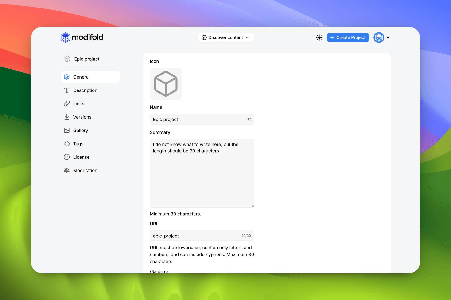 Make sure to fill in the project's Description.