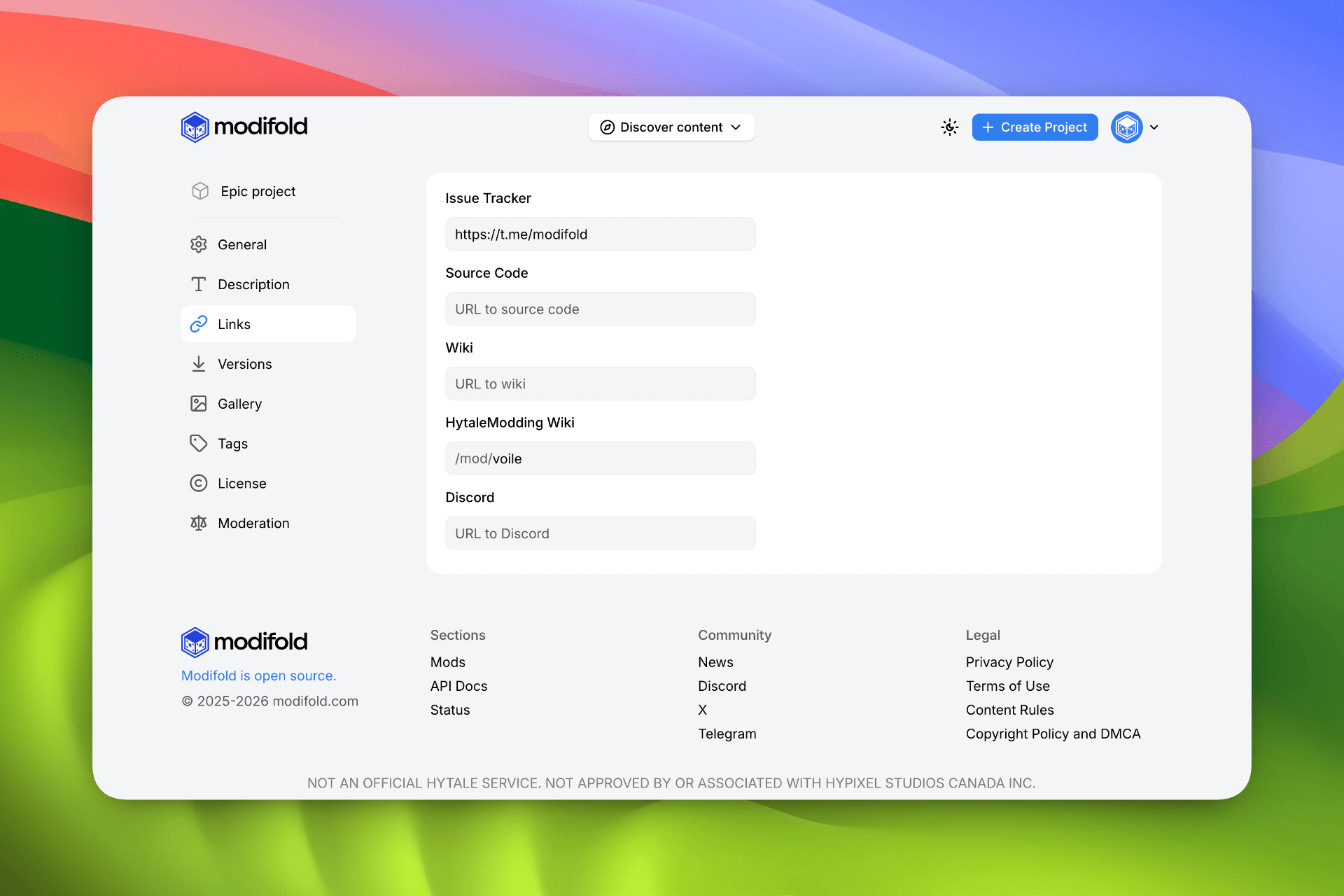If your mod uses HytaleModding Wiki, just add the wiki link in your Modifold project settings.