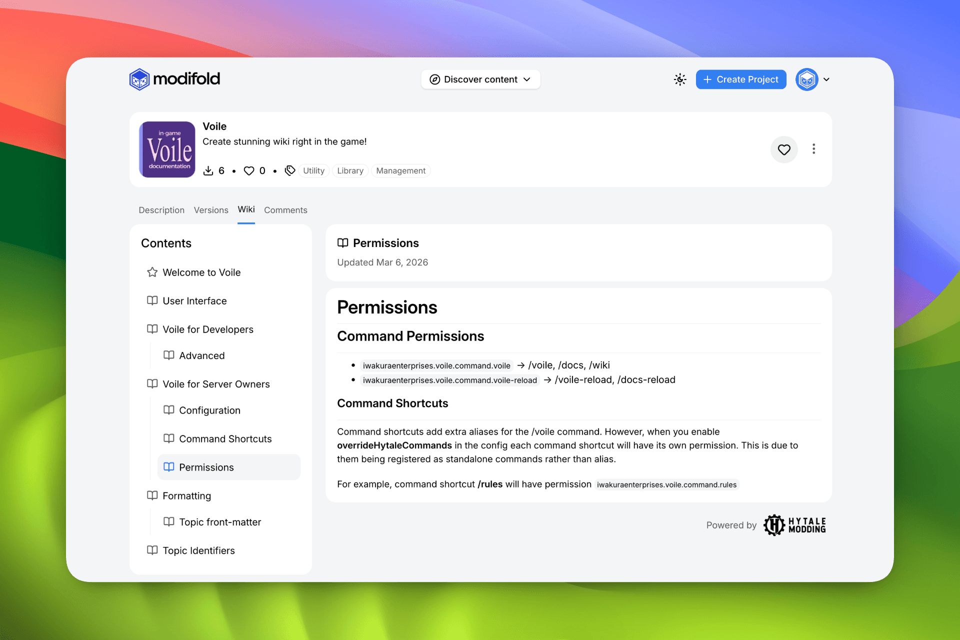 Wiki configuration and editing remain on the HytaleModding Wiki website.